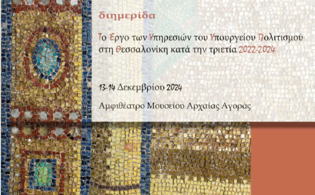 Η Εφορεία Αρχαιοτήτων Πόλης Θεσσαλονίκης διοργανώνει Διημερίδα με τίτλο «Το Έργο των Υπηρεσιών του Υπουργείου Πολιτισμού στη Θεσσαλονίκη κατά την τριετία 2022-2024» με τη συμμετοχή της Εφορείας Αρχαιοτήτων Περιφέρειας Θεσσαλονίκης… Read More