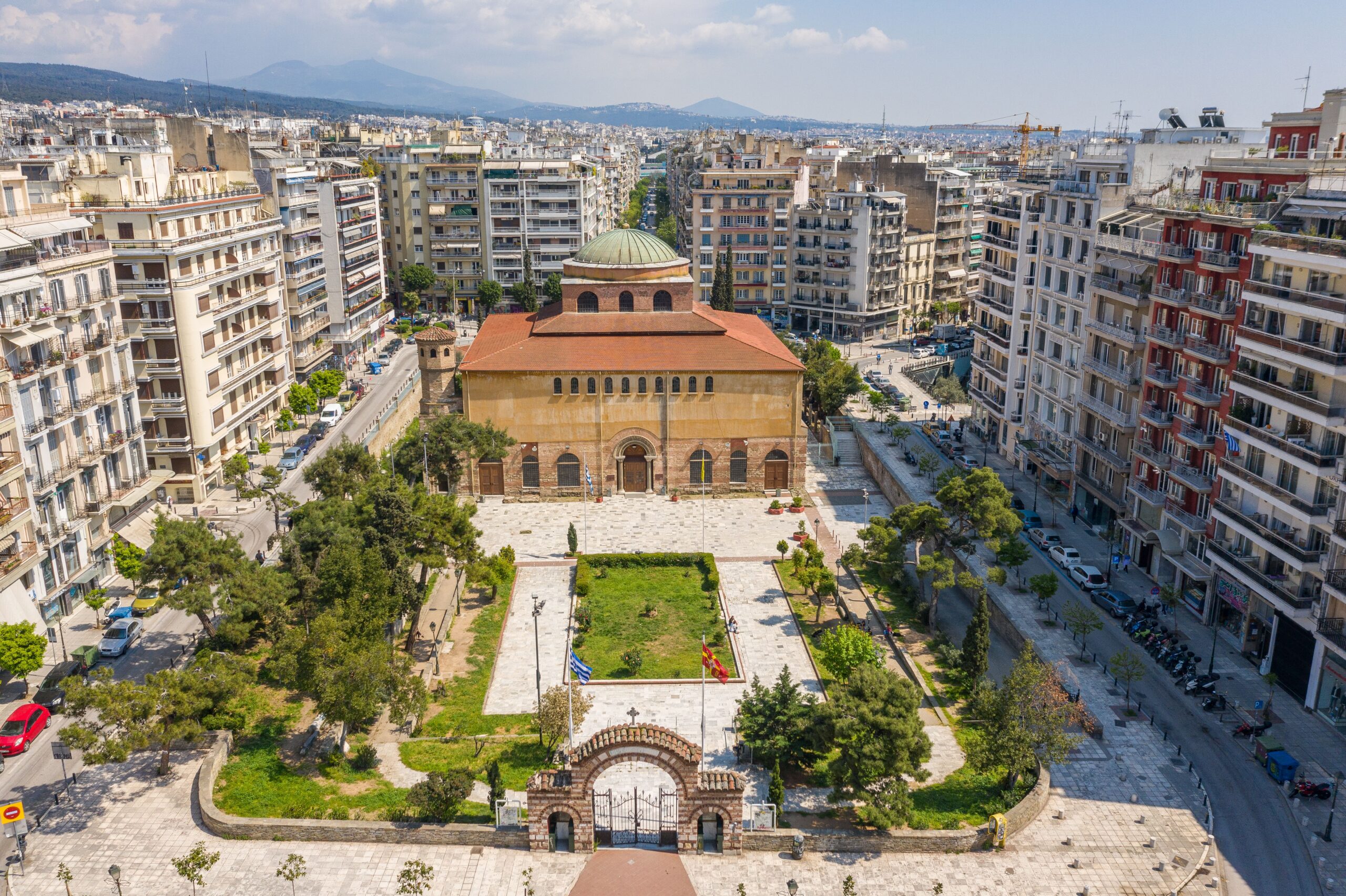 Ο ναός της του Θεού Σοφίας (Αγία Σοφία) ανεγέρθηκε στον 7ο ή τον 8ο αι. πάνω στα ερείπια της παλαιότερης πεντάκλιτης βασιλικής και υπήρξε ο μητροπολιτικός ναός της Θεσσαλονίκης σε όλη τη βυζαντινή περίοδο, με εξαίρεση την εικοσαετία της Λατινοκρατίας (1204-1224), οπότε και έγινε καθεδρικός ναός των Λατίνων. Γύρω από το μνημείο διαμορφώνεται αύλειος χώρος που μαζί με το λεγόμενο αγίασμα του Αγίου Ιωάννη Προδρόμου συνιστούν ενιαίο αρχαιολογικό χώρο.