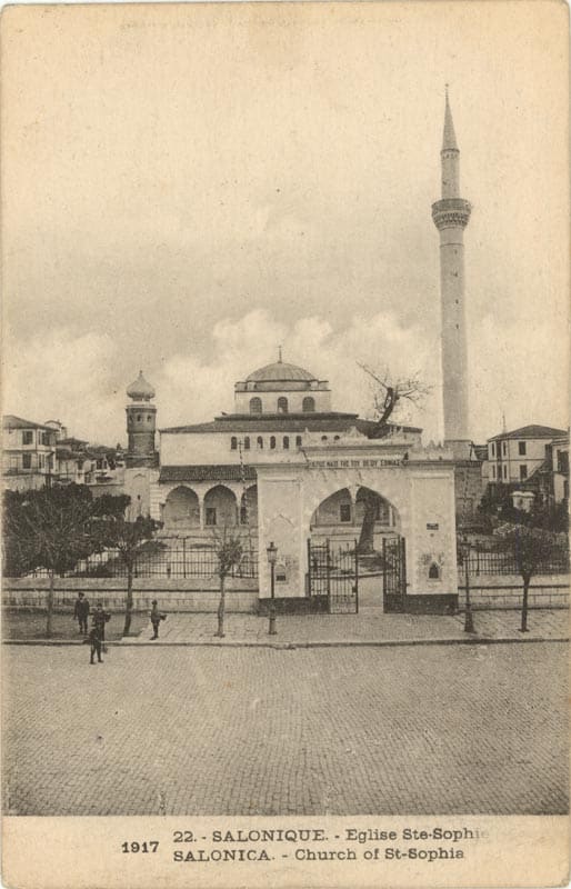 Ο ναός συνέχισε να λειτουργεί ως ορθόδοξη μητρόπολη για έναν σχεδόν αιώνα μετά την οθωμανική κατάκτηση. Μετατράπηκε σε μουσουλμανικό τέμενος το 1523/4 (σύμφωνα με την χαμένη σήμερα επιγραφή της εισόδου) και παρέμεινε χώρος λατρείας για τους μουσουλμάνους με την ονομασία Ayasofya Camii έως την απελευθέρωση της Θεσσαλονίκης το 1912, οπότε και αποδόθηκε εκ νέου στη χριστιανική λατρεία. Εκτεταμένες ζημιές υπέστη το κτίσμα από την πυρκαγιά του 1890, ενώ μεγάλης κλίμακας εργασίες εξωραϊσμού πραγματοποιήθηκαν από τις οθωμανικές αρχές την περίοδο 1908-1910 υπό τον βυζαντινολόγο Κάρολο Ντηλ. Κατά τη φάση λειτουργίας του ως τεμένους έφερε στη δυτική πλευρά του προστώο με οξυκόρυφα τόξα και οκτώ κίονες, αμέσως νότια του οποίου υψωνόταν τυπικής μορφής μιναρές. Στη ΒΔ γωνία του τεμένους υπήρχε πύργος ανόδου προς τα υπερώα, ο οποίος κατά τη Θεοχαρίδου σχετίζεται με τον αρχικό μιναρέ. Στο προαύλιο του τεμένους υπήρχαν ακόμη συνεχόμενα στην πρόσοψη οικοδομήματα που χρησίμευαν ως οθωμανικά σχολεία και νοσοκομεία, που καταστράφηκαν από την πυρκαγιά του 1890. Αντίθετα ο μιναρές της ΝΔ γωνίας κατεδαφίστηκε στα 1925 και το δυτικό προστώο το 1948, ενώ διατηρείται μέχρι σήμερα ο ΒΔ πύργος-κλιμακοστάσιο.