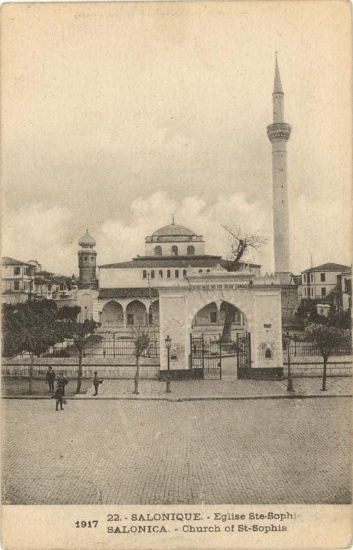 Ο ναός συνέχισε να λειτουργεί ως ορθόδοξη μητρόπολη για έναν σχεδόν αιώνα μετά την οθωμανική κατάκτηση. Μετατράπηκε σε μουσουλμανικό τέμενος το 1523/4 (σύμφωνα με την χαμένη σήμερα επιγραφή της εισόδου) και παρέμεινε χώρος λατρείας για τους μουσουλμάνους με την ονομασία Ayasofya Camii έως την απελευθέρωση της Θεσσαλονίκης το 1912, οπότε και αποδόθηκε εκ νέου στη χριστιανική λατρεία. Εκτεταμένες ζημιές υπέστη το κτίσμα από την πυρκαγιά του 1890, ενώ μεγάλης κλίμακας εργασίες εξωραϊσμού πραγματοποιήθηκαν από τις οθωμανικές αρχές την περίοδο 1908-1910 υπό τον βυζαντινολόγο Κάρολο Ντηλ. Κατά τη φάση λειτουργίας του ως τεμένους έφερε στη δυτική πλευρά του προστώο με οξυκόρυφα τόξα και οκτώ κίονες, αμέσως νότια του οποίου υψωνόταν τυπικής μορφής μιναρές. Στη ΒΔ γωνία του τεμένους υπήρχε πύργος ανόδου προς τα υπερώα, ο οποίος κατά τη Θεοχαρίδου σχετίζεται με τον αρχικό μιναρέ. Στο προαύλιο του τεμένους υπήρχαν ακόμη συνεχόμενα στην πρόσοψη οικοδομήματα που χρησίμευαν ως οθωμανικά σχολεία και νοσοκομεία, που καταστράφηκαν από την πυρκαγιά του 1890. Αντίθετα ο μιναρές της ΝΔ γωνίας κατεδαφίστηκε στα 1925 και το δυτικό προστώο το 1948, ενώ διατηρείται μέχρι σήμερα ο ΒΔ πύργος-κλιμακοστάσιο.