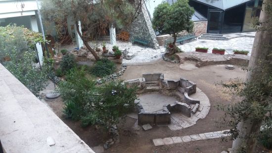 Στον αύλειο χώρο του σημερινού ναυδρίου, δυτικά της υπόγειας δεξαμενής, διασώζονται τα αρχιτεκτονικά λείψανα περίστυλου εξαγωνικού κτίσματος με ομόκεντρη εξάλοβη κατασκευή-κολυμβήθρα, επενδεδυμένη με ορθομαρμάρωση. Το εξαγωνικό αυτό κτίσμα, που εντοπίστηκε μόλις μετά την πυρκαγιά του 1890 και ταυτίστηκε με ρωμαϊκό νυμφαίο, ερμηνεύτηκε ως πρωτοβυζαντινό βαπτιστήριο της προγενέστερης του βυζαντινού ναού της Αγίας Σοφίας, επισκοπικής βασιλικής, αξιοποιώντας την δεξαμενή στα ανατολικά ως θερμαντήρα του νερού που χρησιμοποιούνταν στις χριστιανικές τελετές. Μεταγενέστερα, φαίνεται πως το βαπτιστήριο με τις κατάλληλες μετασκευές, μετατράπηκε σε χώρο λατρείας, όπως αντίστοιχα μετασχηματίστηκε η ανενεργή πλέον δεξαμενή σε υπόγειο προσκυνηματικό χώρο και χώρο αγιάσματος. Για την πρόσβαση των πιστών στο αγίασμα κατασκευάστηκε υπόγεια στοά, ενώ παράλληλα κατασκευάστηκε και υπέργειο κτίσμα ορθογώνιας κάτοψης και αδιάγνωστης χρήσης με ψηφιδωτό δάπεδο χρονολογημένο μετά τα μέσα του 4ου αι.