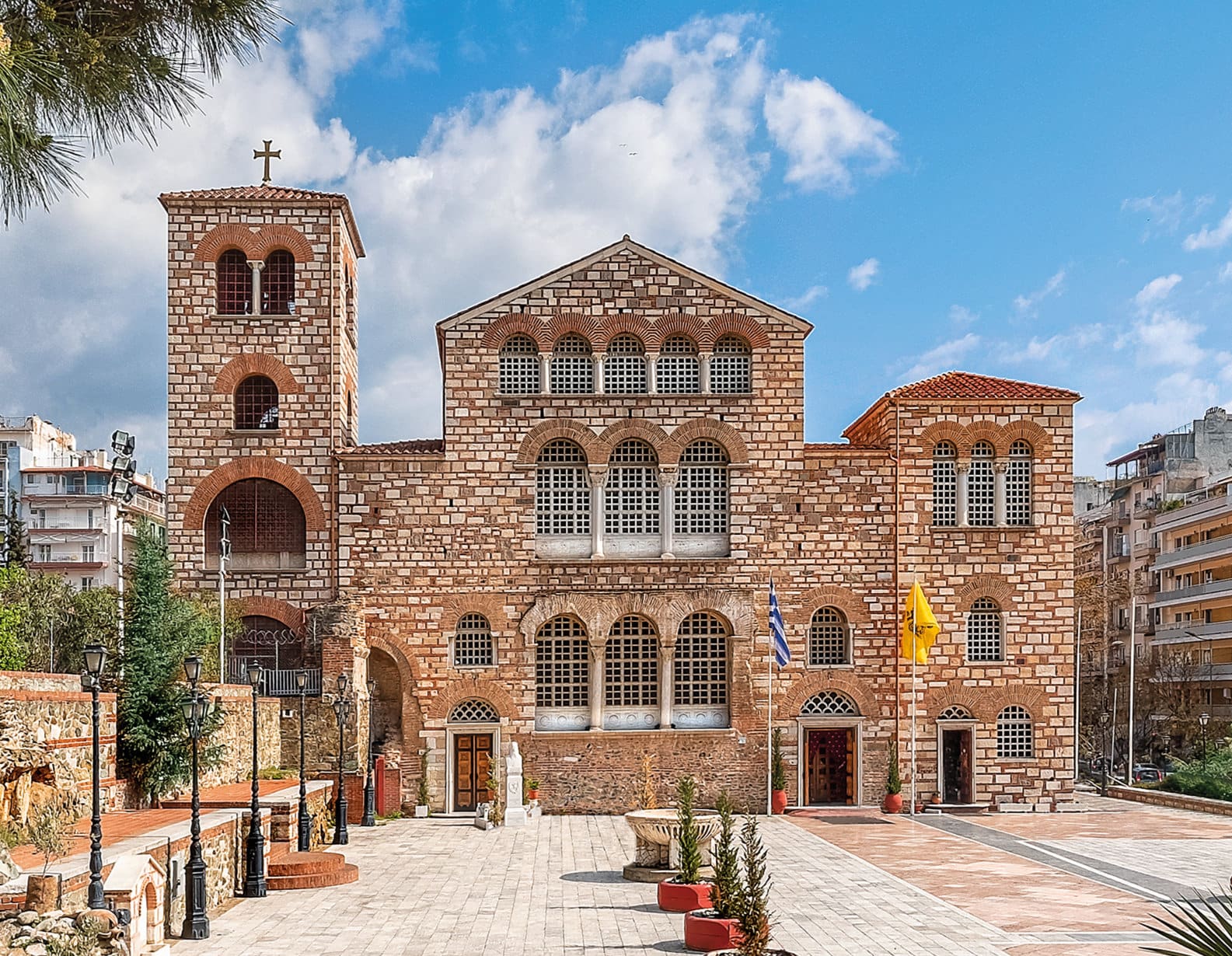 Ο περιώνυμος ναός του Αγίου Δημητρίου, του θαυματουργού και πολιούχου αγίου της Θεσσαλονίκης, αποτελεί ήδη από την πρωτοβυζαντινή περίοδο ένα από τα σημαντικότερα προσκυνηματικά κέντρα της Ορθόδοξης Χριστιανικής Εκκλησίας. Ανήκει στον αρχιτεκτονικό τύπο της πεντάκλιτης βασιλικής με εγκάρσιο κλίτος και διατηρεί πλούσιο ανάγλυφο αρχιτεκτονικό διάκοσμο και ορθομαρμαρώσεις, εντοίχια ψηφιδωτά και τοιχογραφίες -έργα διαφόρων περιόδων με ιδιαίτερη ιστορική, θρησκευτική και καλλιτεχνική αξία. Σύμφωνα με την αγιολογική παράδοση η ίδρυση του ναού ανάγεται στις αρχές του 5ου αι., όταν ο έπαρχος του Ιλλυρικού Λεόντιος ανακαίνισε το μαρτύριο που ανηγέρθη μετά το διάταγμα της ανεξιθρησκίας (313μ.Χ.) στον τόπο όπου ετάφη ο πολιούχος και θαυματουργός άγιος της Θεσσαλονίκης. Περί το 620 ο ναός υπέστη μερική καταστροφή από πυρκαγιά και άμεσα ανακαινίσθηκε υπό την εποπτεία των εκκλησιαστικών και κοσμικών αρχών της πόλης. Τον 9ο – 10ο αι. νοτίως του ιερού της βασιλικής προσαρτήθηκε παρεκκλήσιο αφιερωμένο στον άγιο Ευθύμιο, που τοιχογραφήθηκε το 1303 με δαπάνες του πρωτοστράτορα Μιχαήλ Γλαβά Ταρχανειώτη και της συζύγου του Μαρίας. Ο ζωγραφικός διάκοσμος του παρεκκλησίου, έργο προικισμένου καλλιτέχνη, αποπνέει την υψηλή αισθητική και τη δυναμική της παλαιολόγειας αναγέννησης. Κατά την περίοδο 1492/3-1912 ο ναός του Αγίου Δημητρίου λειτούργησε ως οθωμανικό τέμενος με την ονομασία Κασιμιγιέ (Kasimiye) τζαμί. Η πυρκαγιά του 1917 κατέστρεψε μεγάλο μέρος της βασιλικής, η ανοικοδόμηση της οποίας ολοκληρώθηκε το 1948.