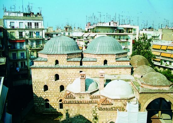 Το οθωμανικό συγκρότημα που περιλάμβανε τζαμί, πτωχοκομείο και ιεροδιδασκαλείο, γνωστό με την ονομασία Αλατζά Ιμαρέτ ή Ισχάκ Πασά τζαμί, ανεγέρθηκε σε δεσπόζουσα θέση της πόλης από τον Ισχάκ Πασά, μεγάλο βεζίρη επί Μωάμεθ Β’ και βαλή της Θεσσαλονίκη επί Βαγιαζήτ Β΄. Η ανέγερση χρονολογείται στα 1484, έτος σύνταξης του αφιερωτήριου εγγράφου και επιγραφή στο υπέρθυρο της κεντρικής εισόδου. Ανήκει στην κατηγορία των πρώιμων οθωμανικών τεμενών σχήματος ανεστραμμένου Τ στην εξελιγμένη παραλλαγή ως προς το μέγεθος του χώρου προσευχής και στη σύνθετη παραλλαγή ως προς τη διάταξη των πλευρικών διαμερισμάτων, διαμορφώνοντας θολοσκεπές κιονοστήρικτο προστώο στη δυτική πλευρά.