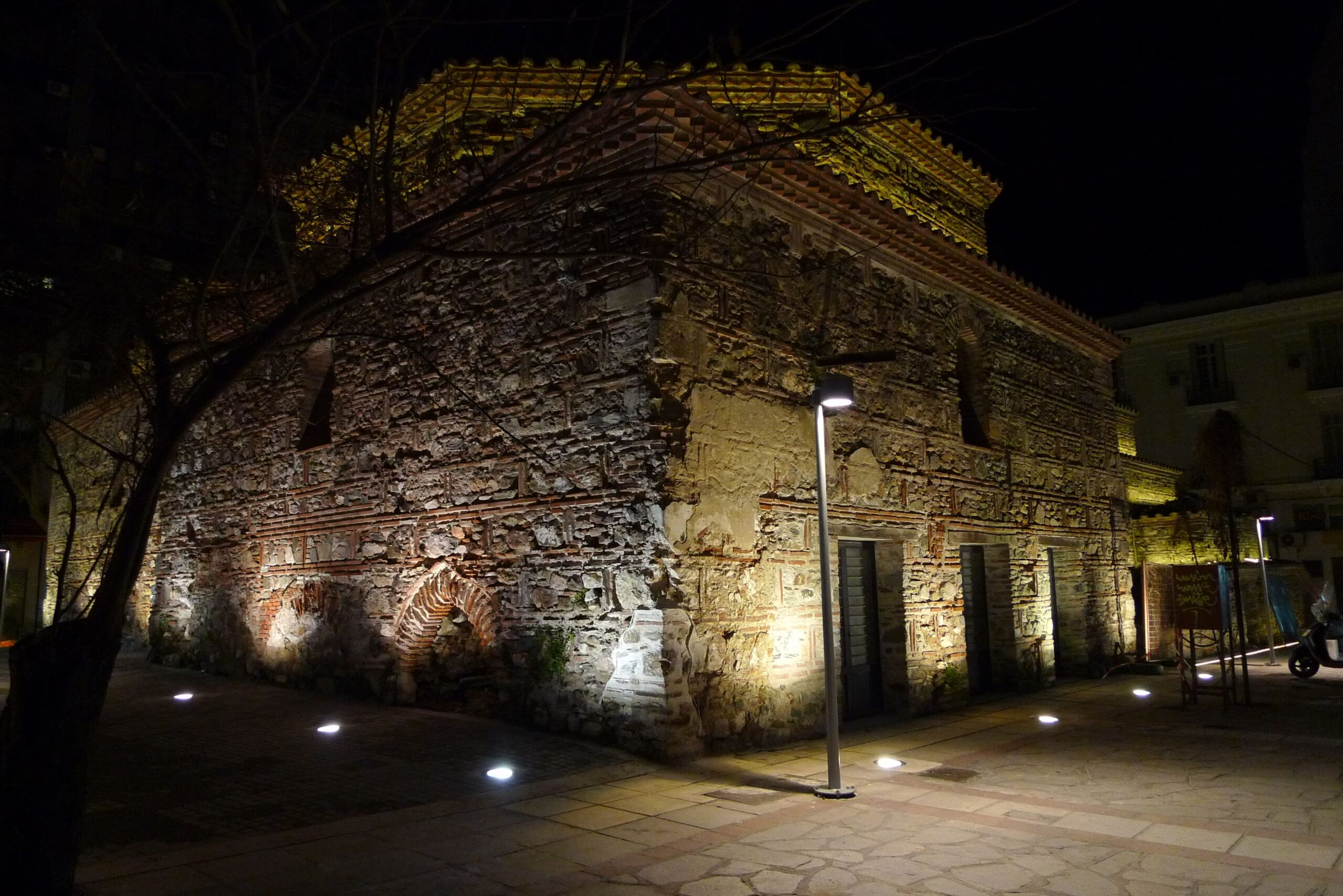 Κτίστηκε ως δίδυμο λουτρό με χωριστά τμήματα για άνδρες και γυναίκες και εισόδους πιθανότατα από την οδό Βασιλέως Ηρακλείου και την οδό Κομνηνών αντίστοιχα. Ακολουθεί την τριμερή διάταξη των λουτρικών εγκαταστάσεων με προθάλαμο-ψυχρό χώρο, χλιαρούς και θερμούς χώρους. Δύο μεγάλοι τρούλοι στεγάζουν τους δύο προθαλάμους και 13 μικρότεροι τους υπόλοιπους χώρους. Κάτω από το επίπεδο των θερμών χώρων διαμορφώνονται υπόκαυστα με πλινθόκτιστους πεσσίσκους που ανακρατούν τα δάπεδα. Στην τοιχοδομία εφαρμόζεται το πλινθοπερίκλειστο σύστημα δόμησης, ενώ μαρμάρινα μέλη ρωμαϊκών και βυζαντινών χρόνων έχουν χρησιμοποιηθεί σε δεύτερη χρήση κυρίως στη δόμηση και εν μέρει στον εξοπλισμό. Εσωτερικά διατηρείται διάκοσμος με γυψοκονιάματα που σχηματίζουν σταμπωτά ανάγλυφα μοτίβα και με σταλακτίτες στις κόγχες και τους θόλους.