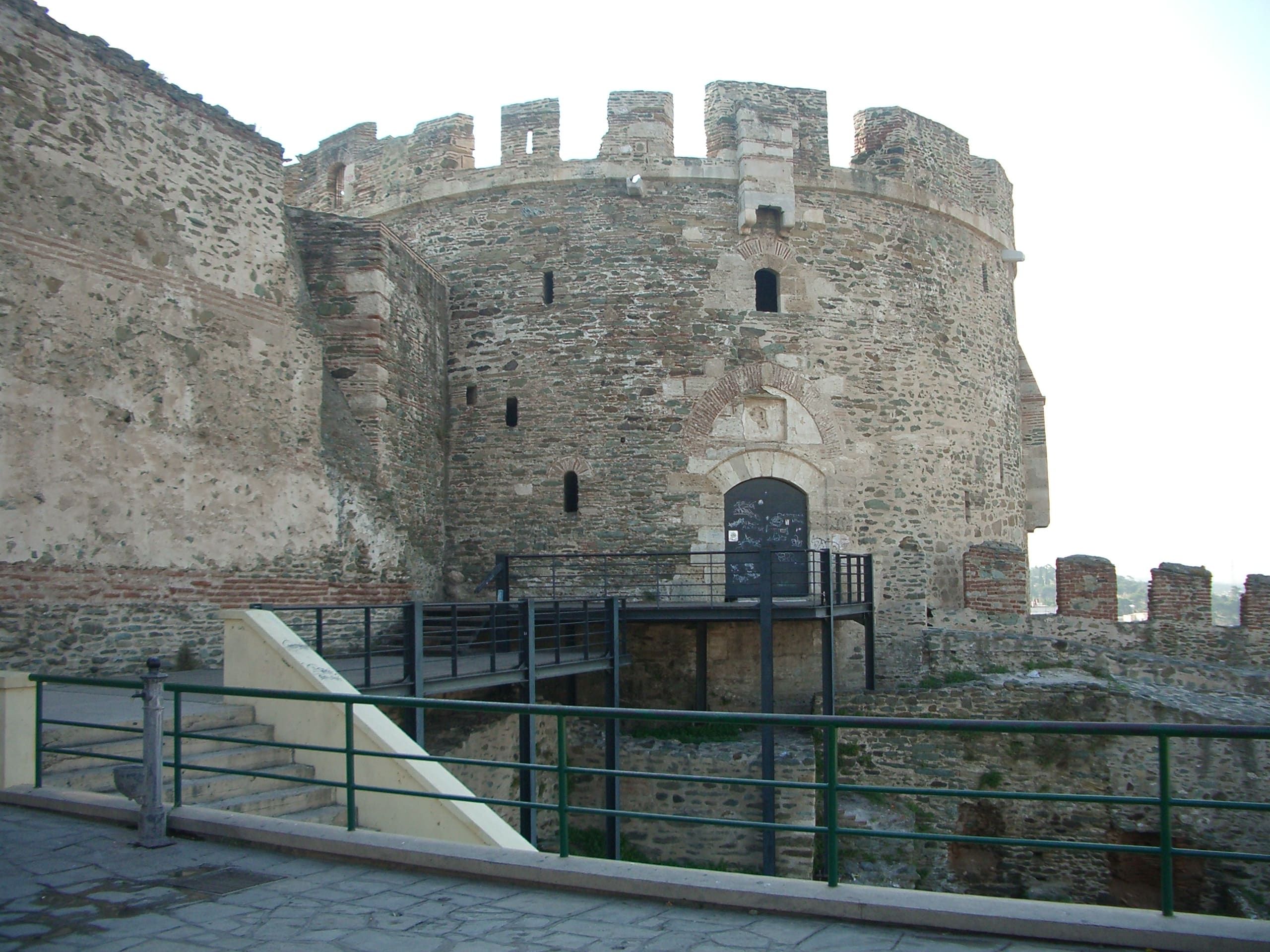 Ο πύργος ενσωμάτωσε προγενέστερο τριγωνικό πρόβολο της βυζαντινής οχύρωσης, ο οποίος, με τη σειρά του αντικατέστησε τετραγωνικό πύργο του ρωμαϊκού τείχους στην θέση αυτή. Στην ενσωμάτωση του τετραγωνικού πύργου στον κυκλικό μέχρι το ύψος του δώματος οφείλεται η ιδιόμορφη εσωτερική διαμόρφωση των ορόφων και των κλιμακοστασίων στο βυζαντινό Τριγώνιο. Η είσοδος στον Πύργο γίνεται από τα δυτικά μέσω ξύλινης πλατφόρμας, που στηρίζεται σε σύγχρονη μεταλλική κατασκευή.