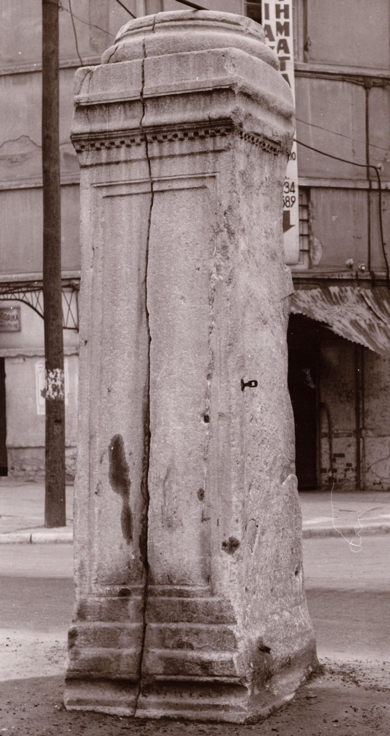 Σύμφωνα με τη Στεφανίδου-Τιβερίου, ο κίονας αποτελούσε βάση ελεύθερα στημένου αυτοκρατορικού ανδριάντα της περιόδου μεταξύ του 4ου και του 6ου αι. μ.Χ. Αυτού του τύπου τα τιμητικά μνημεία είναι γνωστά από την Κωνσταντινούπολη και άλλες πόλεις της ανατολικής αυτοκρατορίας, για την ίδρυση των οποίων επιλέγονταν συνήθως κομβικά σημεία. Το μνημείο είναι γνωστό ως «Μάρμαρο του Φιδιού» ή «Στήλη των Όφεων» κατά την τουρκοκρατία («Yilan Mermer» όπως και η ομώνυμη πλατεία), ονομασία που πιθανότατα σχετίζεται με λαϊκή δοξασία σύμφωνα με την οποία κάποιος δαίμονας με μορφή φιδιού κατοικούσε σε τέτοιου είδους μνημεία στα οποία προσδίδεται απειλητικός χαρακτήρας ή προστατευτικές – αποτροπαϊκές δυνάμεις.