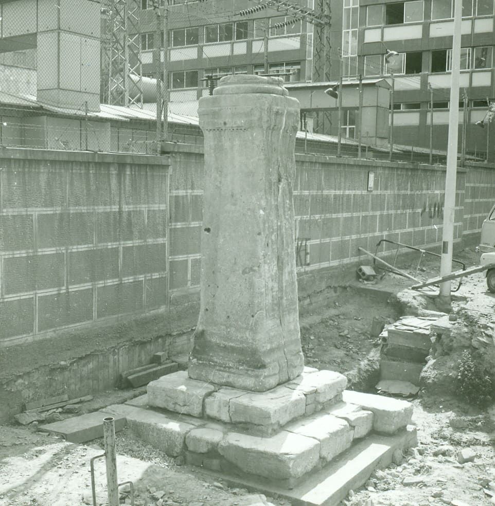Σύμφωνα με τη Στεφανίδου-Τιβερίου, ο κίονας αποτελούσε βάση ελεύθερα στημένου αυτοκρατορικού ανδριάντα της περιόδου μεταξύ του 4ου και του 6ου αι. μ.Χ. Αυτού του τύπου τα τιμητικά μνημεία είναι γνωστά από την Κωνσταντινούπολη και άλλες πόλεις της ανατολικής αυτοκρατορίας, για την ίδρυση των οποίων επιλέγονταν συνήθως κομβικά σημεία. Το μνημείο είναι γνωστό ως «Μάρμαρο του Φιδιού» ή «Στήλη των Όφεων» κατά την τουρκοκρατία («Yilan Mermer» όπως και η ομώνυμη πλατεία), ονομασία που πιθανότατα σχετίζεται με λαϊκή δοξασία σύμφωνα με την οποία κάποιος δαίμονας με μορφή φιδιού κατοικούσε σε τέτοιου είδους μνημεία στα οποία προσδίδεται απειλητικός χαρακτήρας ή προστατευτικές – αποτροπαϊκές δυνάμεις.