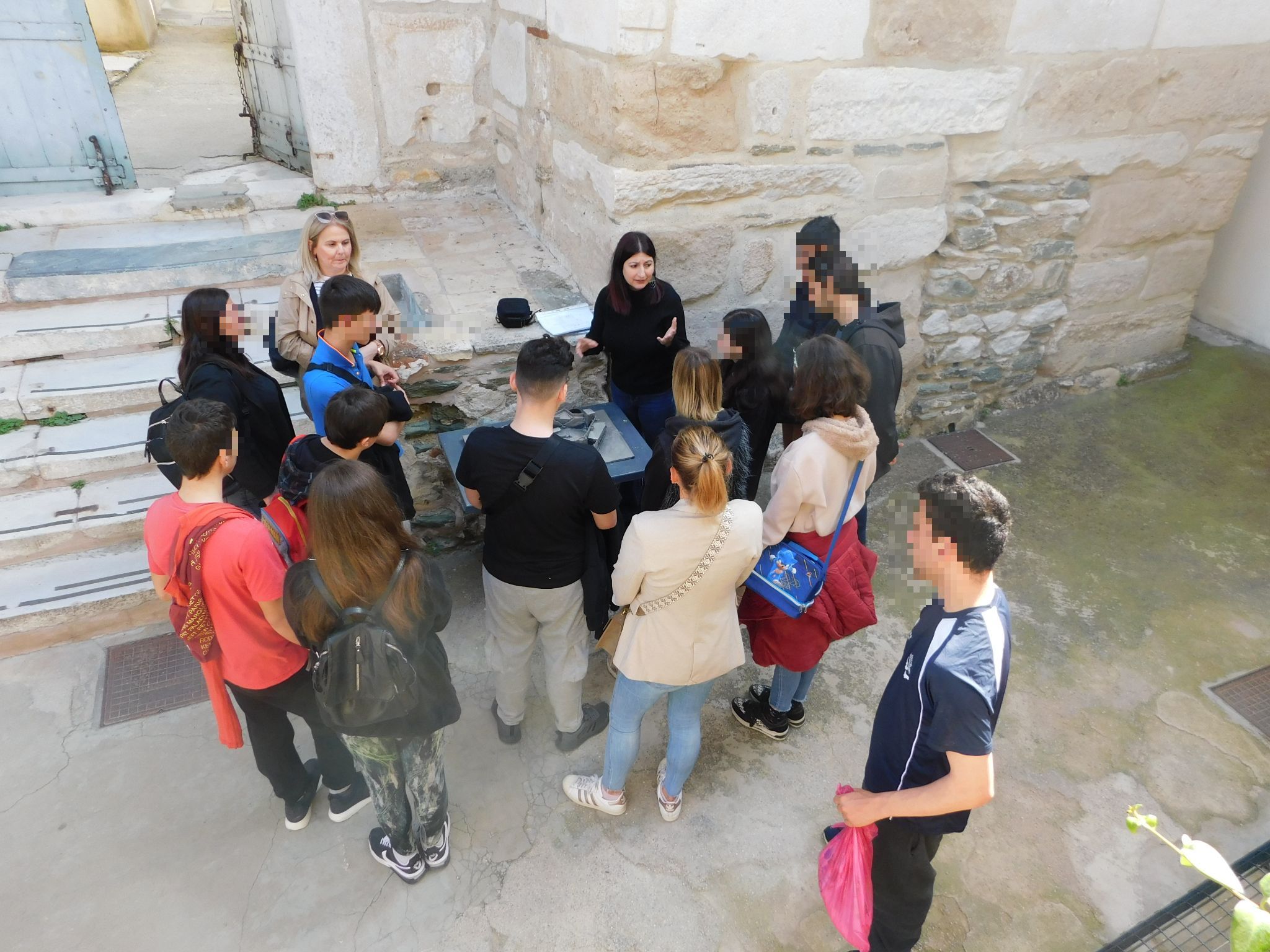 Στην αρχαιότητα το μνημείο ήταν περίοπτο και στημένο σε σχέση με τον δεύτερο σπουδαιότερο αρχαίο οδικό άξονα της πόλης μεταξύ της Ληταίας και της Νέας Χρυσής Πύλης (σημερινή οδός Αγίου Δημητρίου), στη διασταύρωση με την κάθετη οδό της σημερινής οδού Αντιγονιδών, ενταγμένο ίσως σε μία πλατεία. Σταδιακά και με την άνοδο της στάθμης του αρχαίου δρόμου η κρηπίδα του καταχώθηκε. Το 1975 στο πλαίσιο των εργασιών για τη διαπλάτυνση της οδού Αγίου Δημητρίου το μνημείο μετακινήθηκε κατά 5,50μ. προς Βορρά επί του νέου πεζοδρομίου της σύγχρονης οδού. Η βαθμιδωτή κρηπίδα του δεν είναι ορατή, καθώς τοποθετήθηκε με την ανώτερη βαθμίδα της στο ίδιο επίπεδο με τη στάθμη του πεζοδρομίου.